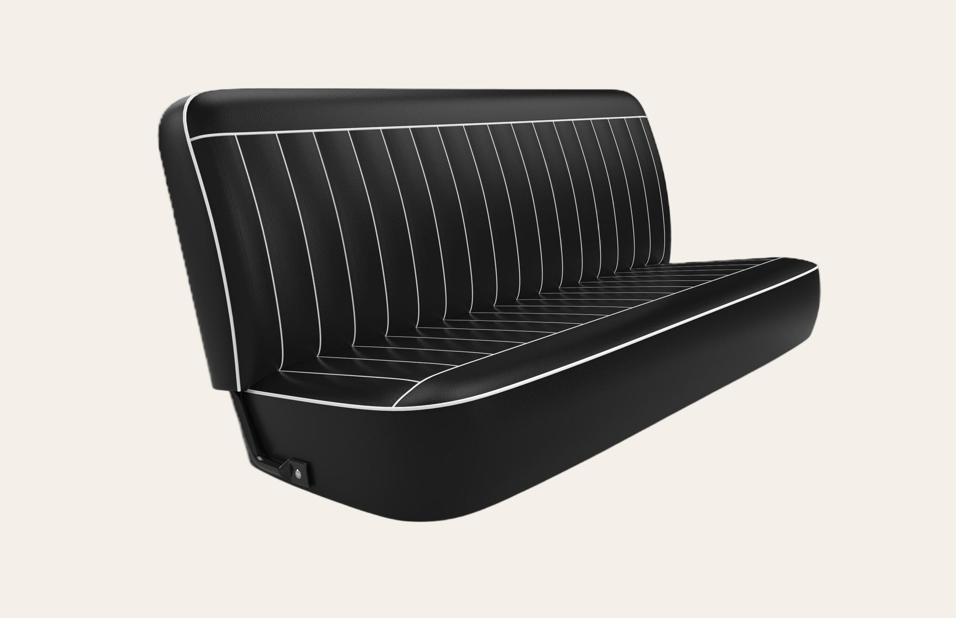 Designed for classic truck bench seats including Chevy C10, GM Squarebody, Ford F-Series, OBS Chevy, Dodge, and International models. Each kit is patterned, cut, and sewn in our Michigan Autelier studio for an accurate, made-to-order fit.